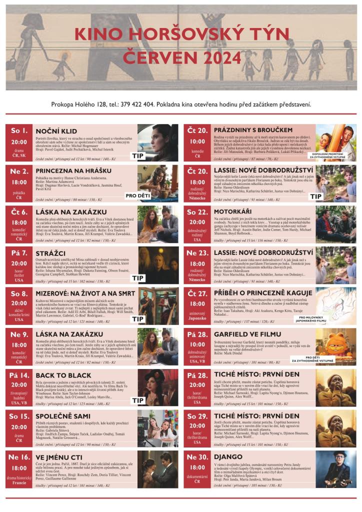 Předprodej vstupenek v Regionálním informačním centru nebo online na https://www.kinohorsovskytyn.cz/ nebo hodinu před začátkem promítání na pokladně kina.