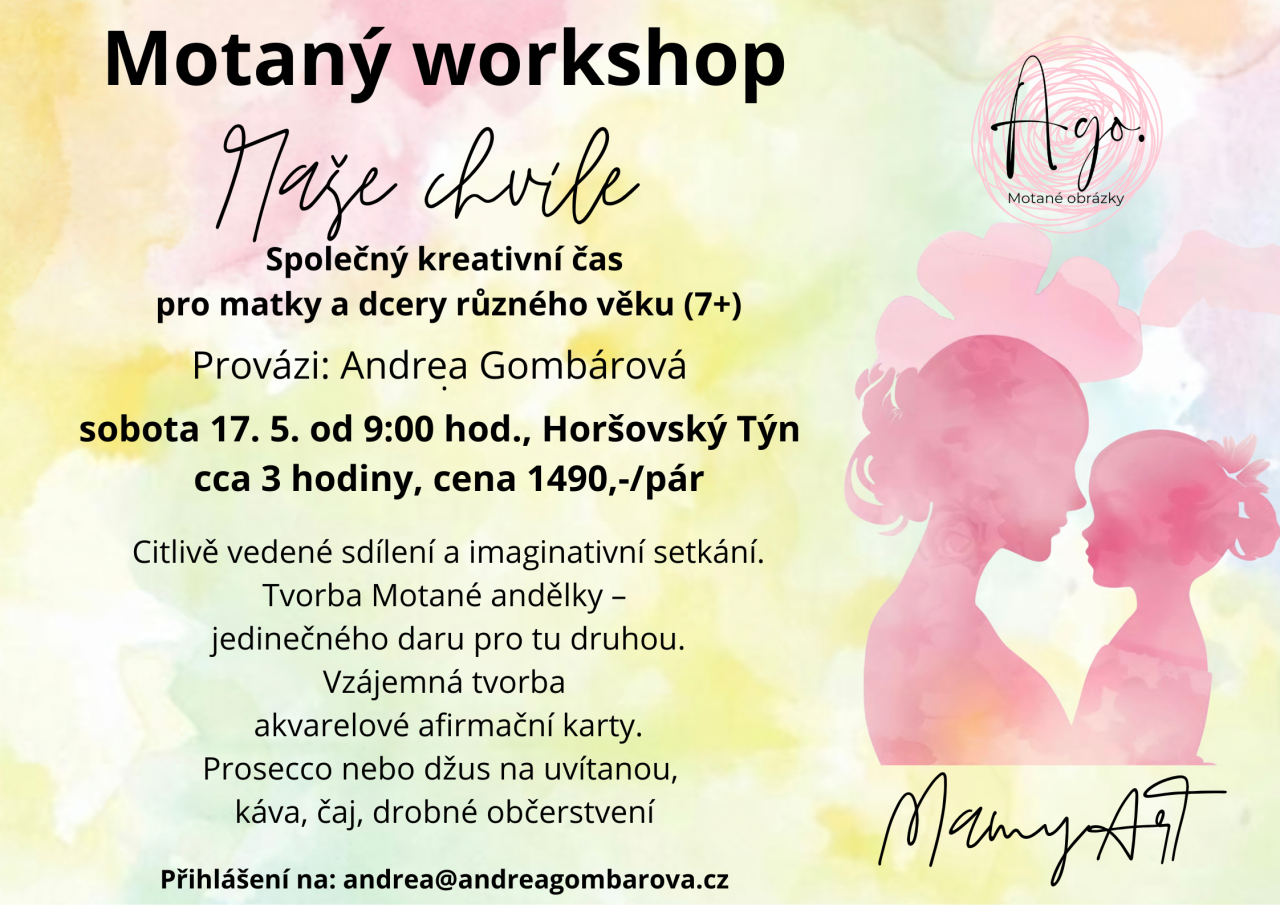 Motaný workshop - Naše chvíle. Společný kreativní čas pro matky a dcery různého věku, sobota 17. 5. od 9:00 hod.
