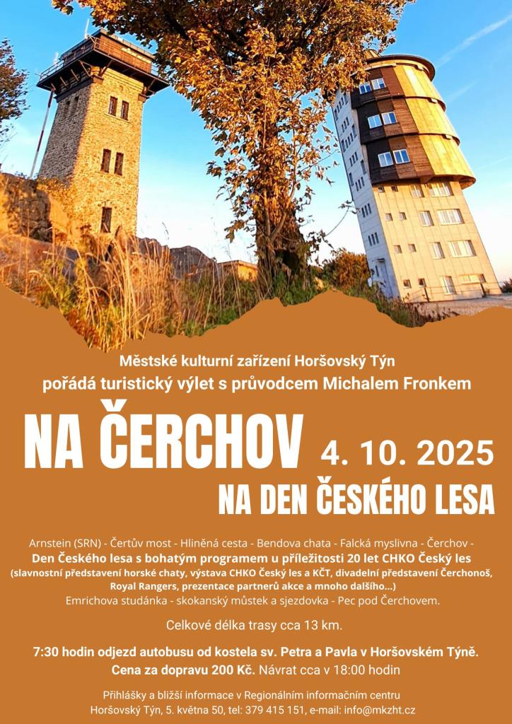 MKZ Horšovský Týn Vás zve na turistický výlet na Čerchov s průvodcem Michalem Fronkem. Tento den se tam koná i akce Den Českého lesa. Tak neváhejte a pojeďte-pojďte s námi.